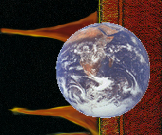 The Earth is 7909 miles (12,756 kilometers) in diameter. This is about the same size as the average thickness of the outer layers of the Sun. (Photosphere + Chromosphere + Transition Region + Spicules)