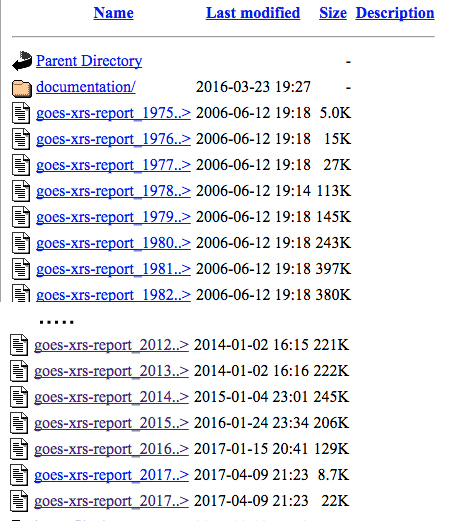 Scroll down to the bottom of the page and pick a recent year. For this example, we'll pick: goes-xrs-report_2015